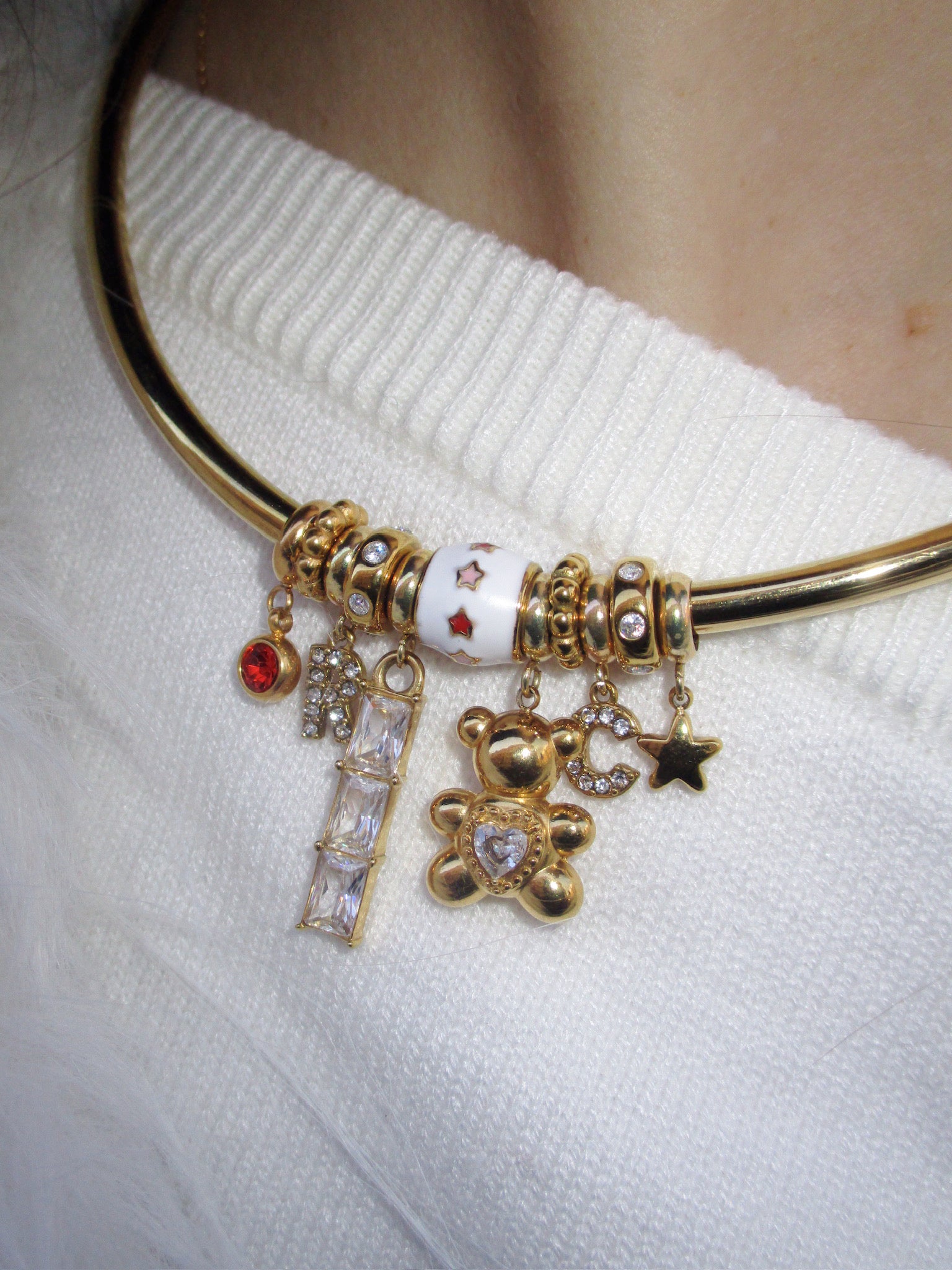Después de elegir tu cadena favorita, te recomendamos empezar por el charm central: que sea el más grande o llamativo.